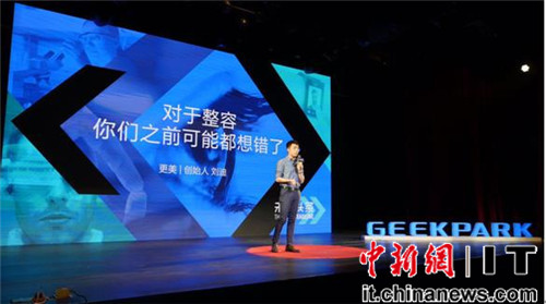 首先上場的是更美創始人劉迪,他在現場講述了整容這件事是怎麼變簡單的,更美的產品聚合了80、90後主要整形消費者,在平臺上面分享自己的整形經歷,通過 UGC 內容向消費者提供很強的消費參考,消費參考會直接帶動消費者去在我們平臺上去提供一個優質服務的醫院醫生。
