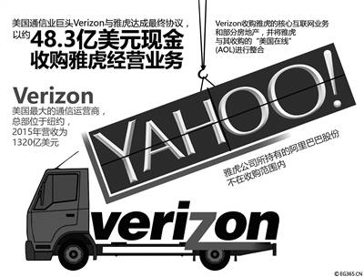 美國電信運營商韋里孫公司25日宣布,將以約48.3億美元的價格收購雅虎核心資產,其中包括雅虎核心的互聯網業務及一些房地產資產。本次收購將以現金方式交易,預計在2017年第一季度完成。收購後雅虎將被整合入韋里孫旗下的美國在線(AOL)。此次收購完成後,雅虎將轉變為一家投資機構。