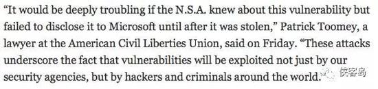 因此,在此次“永恆之藍”爆發之後,《紐約時報》的報道就稱,“如果確認這次事件是由國安局(NSA)泄漏的網絡武器而引起的,那政府應該被指責,因為美國政府讓很多醫院、企業和他國政府都易受感染”。