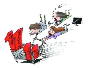 為了搶貨,丁小姐說她可是動員全家齊上陣,把能用的家夥都派上了場:老媽用電腦,老公用iPad,她自己則是左右開弓,左手手機右手電腦。“想買的東西,都是我‘雙11’之前就做好功課、放到購物車里的。”在瞌睡蟲的侵襲中,丁小姐向記者講述了折騰的“雙11”之夜:昨晚11點40分,全家人就打開了搶貨工具,嚴陣以待。0點一過,她和老公、老媽就開始刷新係統。登錄的人太多,iPad和手機都刷不動,只有老媽手里的電腦還比較給力,12點後已經是新價格。