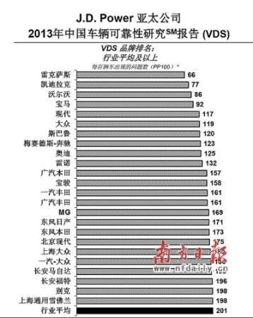 而今年中國車輛可靠性研究是基于2010年6月至2011年8月期間購車的17883位車主的評價,涵蓋了59個品牌的161款車型。數據採集工作于2013年6月至9月在37個城市進行。