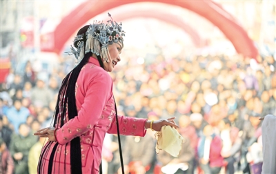 1月2日,在安徽省亳州市譙城區十河鎮,演員在表演亳州非遺劇種“二夾弦”。當日,安徽省亳州市譙城區2014年“三下鄉”活動啟動,為基層群眾送上新年的問候。 張延林攝(新華社發)