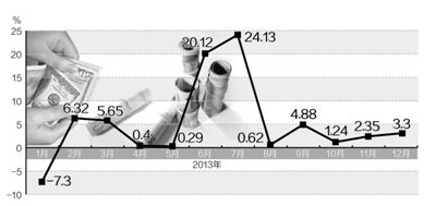 2013年我國實際利用外資增速