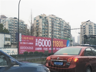 杭州明確表示跟降的項目,截至目前僅有天鴻香榭里一個。該項目此前售價17500元/平方米,目前在售均價為13800元/平方米,更是打出了直降6000元/平方米的宣傳口號。新京報記者 李捷 攝