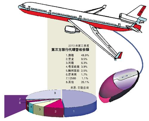 艾瑞咨詢統計顯示,去年第三季度第三方在線代理營收份額,攜程一家獨大佔據48.9%,其次是藝龍、同城、號百商旅,芒果網僅為1.7%。