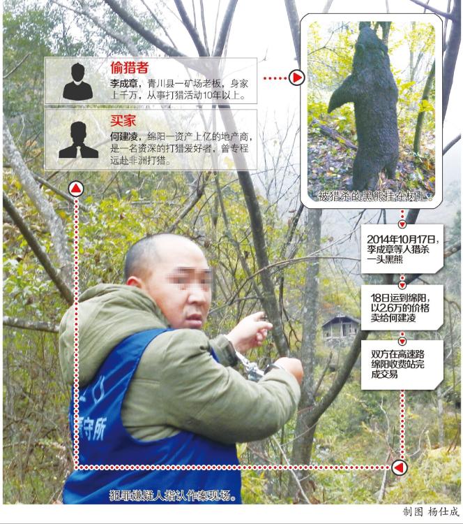 近日,四川廣元市青川縣森林公安擋獲一個非法狩獵、收購野生動物及制品的犯罪團夥,在13名涉案人員中,主要偷獵犯罪嫌疑人李成章曾是坐擁上千萬資產的礦老板,而買家之一何建淩則是身家上億的綿陽地產商,還曾赴非洲狩獵。圖片來源:華西都市報官方微博