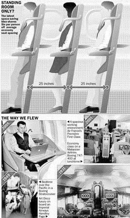 2006年,“站著飛行”也一度是國際新聞界的熱點話題。因為當時英國泰晤士報曾經曝出,空中客車飛機公司,有意向亞洲的航空公司推銷帶有站票艙位的飛機,以實現每趟航班“多拉快跑”的利潤最大化。此外,晨報記者還發現,在一些國家航空器設計比賽、交通運輸研究中,也有學者或學生腦洞大開,做出過相關的設計和研究。