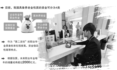 截至去年三季度末,我國共有事業編制人員超過3100萬人,其中建立職業年金的人數很少。據估算,未來企事業單位職工繳納職業年金每年增加部分將超過2000億元。目前,我國企業職工繳納的企業年金投資管理規模約為7000億元。