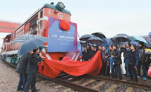 1月28日上午,一輛國際貨運班列拉響汽笛,緩緩從義烏鐵路西站啟程,經過14天的行程,它將駛入終點站——伊朗首都德黑蘭。這趟國際集裝箱貨運班列是國內首列開往中東地區的線路,也是義烏繼中歐班列、中亞班列後,又一趟駛向“一帶一路”國家的新絲路“直通車”。