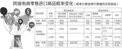 4月8日起,我國將正式實施跨境電子商務零售進口稅收政策,並同步調整行郵稅政策。新政策,明確要求對跨境電商零售進口商品按照貨物徵收關稅和進口環節增值稅、消費稅,單次交易限值提高至2000元,個人年度交易限值為20000元。在限值以內進口的跨境電子商務零售進口商品,關稅稅率暫設為0%;進口環節增值稅、消費稅取消免徵稅額,暫按法定應納稅額的70%徵收。