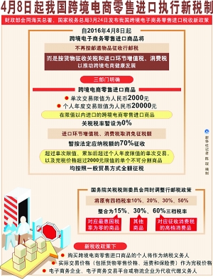 跨境電商稅收新政主要有兩點:一是跨境電商零售進口商品不再按行郵稅徵收,而是在購物限值內按照貨物徵收關稅和進口環節增值稅、消費稅,稅率可以享受七折優惠。單次交易限值為2000元,個人年度交易限值為2萬元。二是進口環節增值稅、消費稅不再設免徵額。
