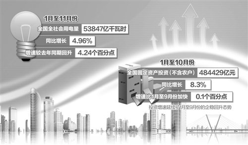 趙辰昕介紹,1月至11月份,全國全社會用電量53847億千瓦時,同比增長4.96%,增速較去年同期回升4.24個百分點。其中,第一二三產業和居民生活用電量同比分別增長5.16%、2.62%、11.66%和11.43%,增速同比分別回升2.19個、3.74個、4.33個和6.70個百分點。