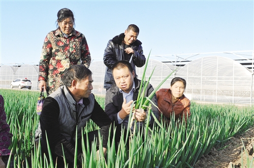 12月12日,在江蘇響水縣運河鎮大蔥產業基地,農技專家正在對農戶作技術指導。圍繞推進精準扶貧,該鎮通過招商引資與農業龍頭企業達成合作幫助農戶致富,同時將20畝地返租給20戶低收入戶,每畝年增收3000元以上。 李相全攝