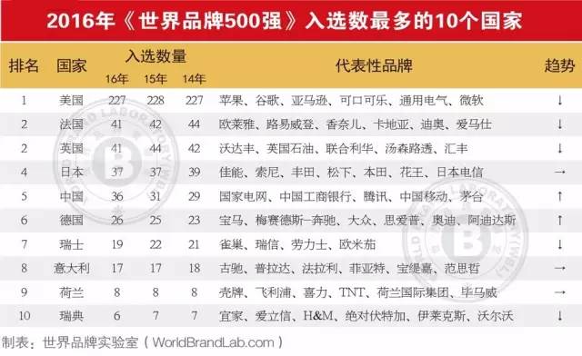 2016年《世界品牌500強》排行榜入選國家共計28個。