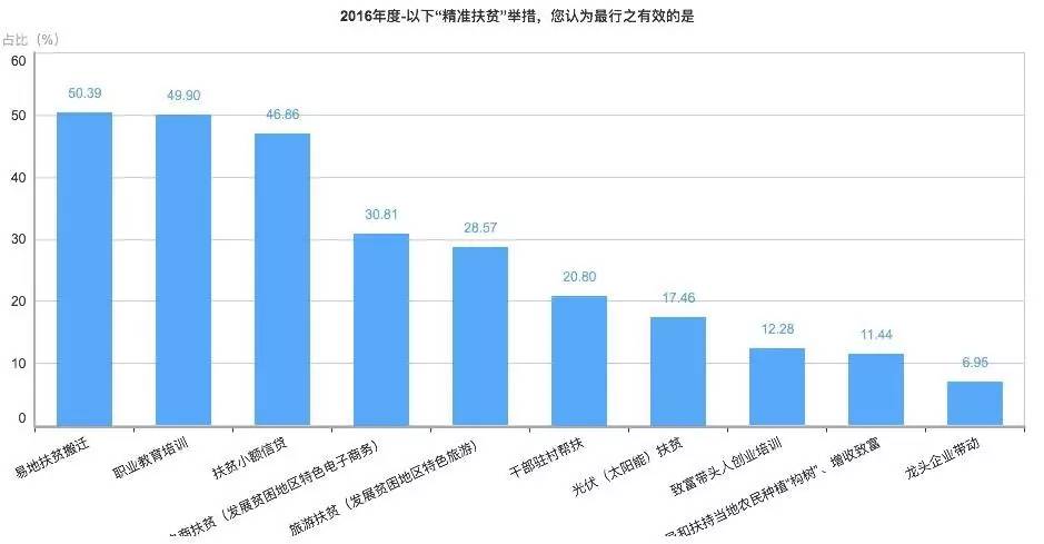 調查結果顯示,家庭年收入1萬元以下的困難群體,最關注的精準扶貧政策排在前三位的分別是“異地扶貧搬遷/職業教育培訓/扶貧小額貸款”。這為扶貧攻堅決勝階段的精準施政,提供了非常有價值的參考。