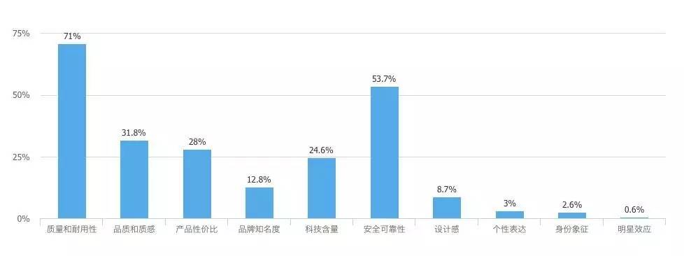有價值的是,大調查設置了專門問題——“消費者願意為商品的哪些因素買單”,結果顯示,受訪者最看重的是質量和耐用性(71%)、安全可靠性(53.7%)、品質和質感(31.8%),“明星效應”排位最低。把握這些來自消費者的數據,有利于為供給側結構性改革提供更精確的方向。