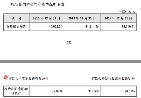 關于大豐實業應收賬款期末凈額以及存貨問題,2017年3月2日,證監會發行監管部在反饋意見中提出了如下內容: