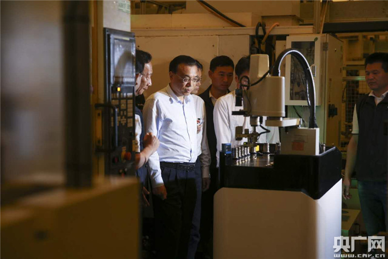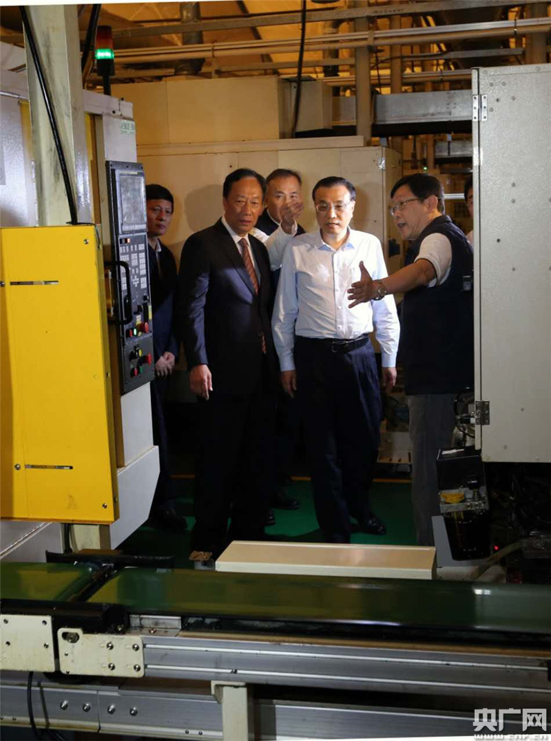 李克強9日考察鄭州富士康科技園,先來到富士康全球首個智能生產無人車間,隨後走進2000多人的精密組裝測試車間。總理關切詢問工人收入和防護等情況。他最後寄語這里的員工,投身先進制造業尤其要珍視兩種精神:一是精益求精的工匠精神,二是永不止步的創客精神。