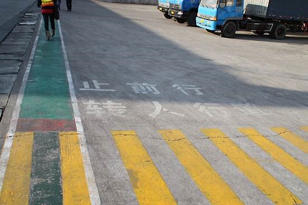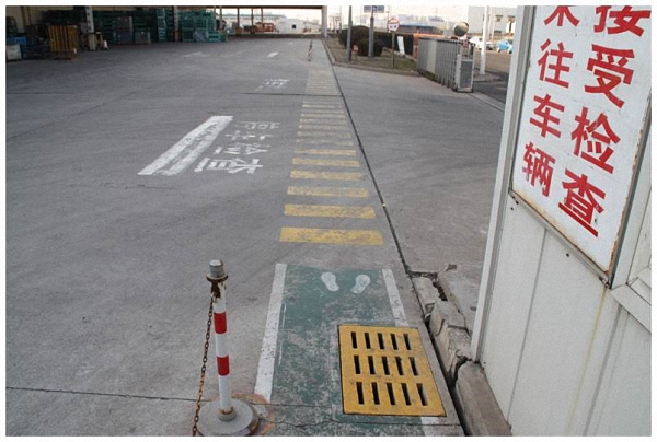 下面這幾張圖,是筆者多年前在國內某日企工廠廠區里拍到的照片,可以看到規范的廠區內道路、辦公樓內的行走秩序。