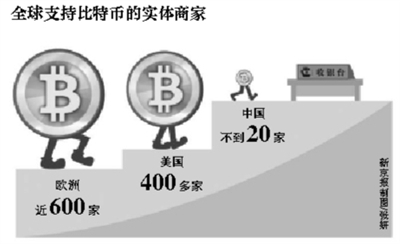 近兩年來,比特幣已成為增速最快的虛擬貨幣。“貨幣地圖”網站數據顯示,11月份,全世界支持比特幣支付的實體商戶增加了81%。全世界約有1400家實體商戶加入比特幣支付行列,其中歐洲有近600家,美國有400多家,但中國商家數量不多,只有不到20家,主要分布在北上廣等一線城市。