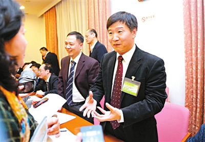 市交通委主任劉小明在昨天的政務咨詢會上接受媒體採訪攝影/本報記者 賈婷