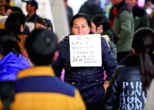 北京晨報記者現場調查發現,春節後,不少單位又開始經歷“用工荒”。天橋上、超市入口處、公交車站旁等人員密集處,不少縮著脖子取暖的年輕人,手拿打印著“招聘”黑字的A4紙,殷勤地詢問過往路人“找工作麼?”房地產中介和餐飲服務員是需求量最大也是最難招工的行業。按這兩年經驗,每年正月十五後,市場招聘旺季將全面啟動,可也恰恰是求職者觀望心態最濃厚的時期,這段青黃不接的時期可能要持續到4月份。