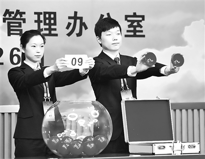 2月26日,工作人員在展示隨機抽選的現場代表人號碼。當日14時26分,天津市小客車總量調控首次搖號儀式舉行。首次搖號共有136640個申請編碼通過資格審核,最終搖出4675個增量指標。