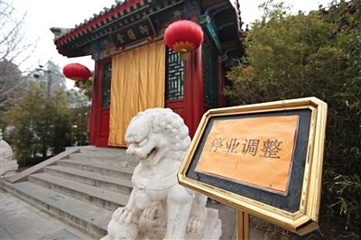 昨天,北海公園內的乙十六禦膳堂門口仍挂有“停業調整”的牌子。記者 王叔坤 攝