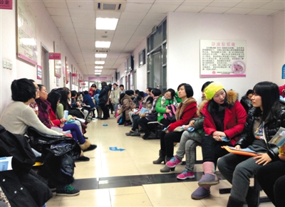 2013年12月26日,北京婦產醫院,下午三點半仍有不少人在產科診室外排隊候診。隨著“單獨二孩”的實施,大醫院建檔難等問題更加凸顯。新京報記者 黃月 攝