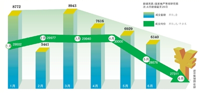 ●6月二手房成交均價為27311元/平方米,比1月下跌7.43%