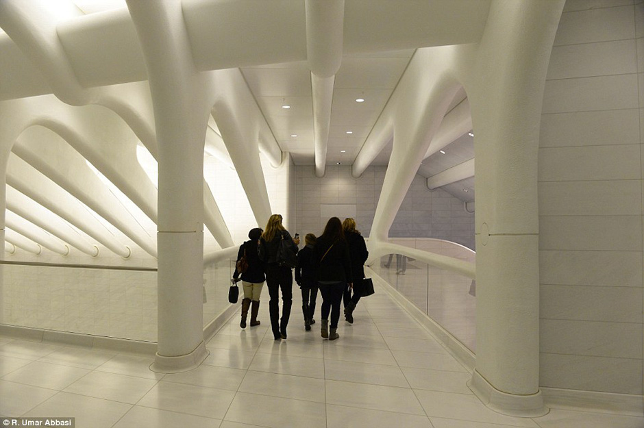 據英國《每日郵報》11月9日報道,耗資14億美元的世貿中心交通樞紐正式開通運營。連接世界貿易中心到曼哈頓下城的9條地鐵線路,每天可接待30完乘客,目前已有部分商戶和企業進駐世貿中心辦公。(網頁截圖)