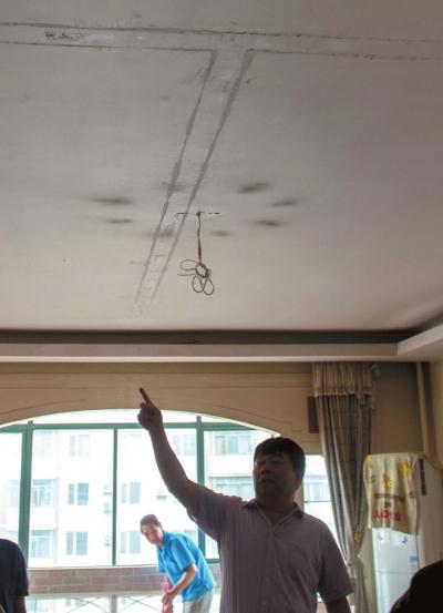 昨天下午兩點多,在天通西苑第一社區63號樓7層的一戶居民家中,記者看到面積40多平方米的客廳屋頂留有“T”形痕跡。