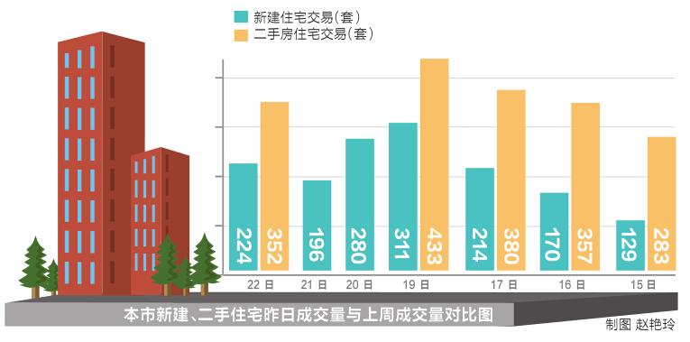 昨天起,房地產交易環節契稅、營業稅優惠政策調整,部分房源交易稅費可省上萬元之多。記者走訪發現,新政出臺後,新房二手房市場咨詢量增長了一倍左右,不過執行首日市場成交量漲幅並不明顯。市國土資源和房屋管理局公布的每日房價顯示,2月22日全市新建商品住宅共成交224套,二手住宅交易352套,與上周日均交易量相比漲幅並不明顯。