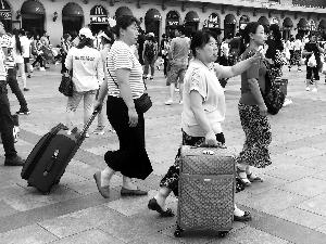 昨天是端午小長假最後一天,許多外出遊玩的人返回京城。圖為北京站前廣場的返京客流。首席攝影記者 吳寧/攝