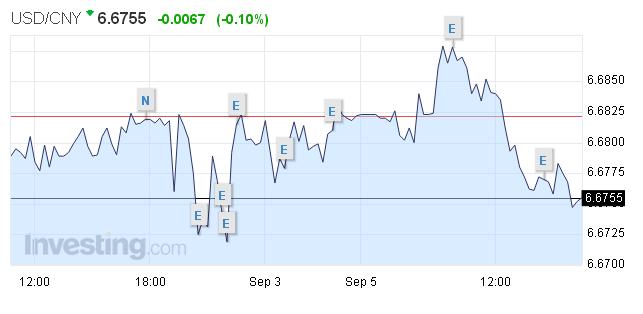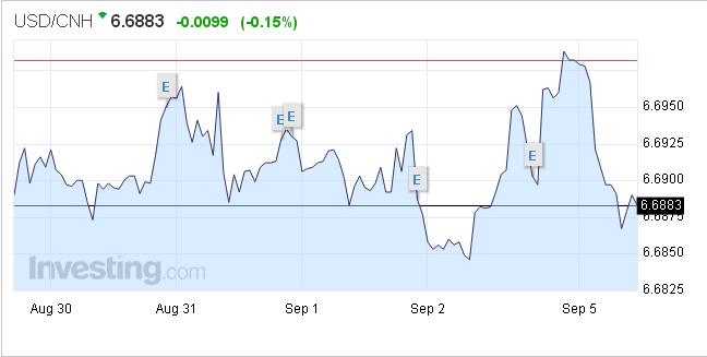 5日,人民幣對美元中間價報6.6873,較上周五(9月2日)的中間價6.6727貶值146個基點。上周五,人民幣面臨一定貶值壓力,其中離岸人民幣對美元即期匯率收跌0.19%,報6.6980,盤中最低跌至6.6996,距6.70市場心里價位僅差4個基點。在岸人民幣對美元即期匯率則收于6.6800,與上一交易日持平。