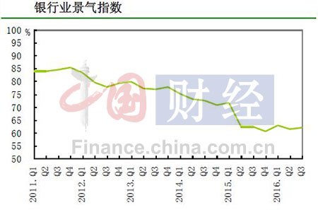 中國人民銀行發布的2016年第三季度銀行家問卷調查報告顯示,銀行業景氣指數為62%,較上季提高0.7個百分點,較去年同期下降0.2個百分點。銀行盈利指數為62.5%,較上季提高0.3 個百分點,較去年同期下降2個百分點。