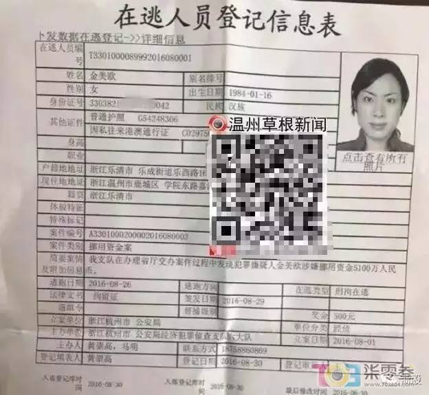 1月7日晚間,一份《在逃人員登記信息表》在網絡上瘋傳,其核心內容是:浙江樂清籍人士金美歐涉嫌挪用5100萬元資金,“刑拘在逃”。多家媒體指出,該金美歐為上市公司金龍機電(300032.SZ)原董事,也是金龍機電實控人金紹平之女。