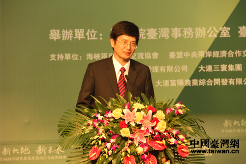 國務院臺辦經濟局局長徐莽發表題為《兩岸農業交流與合作的回顧與展望》的專題演講。(中國臺灣網 王君飛 攝)