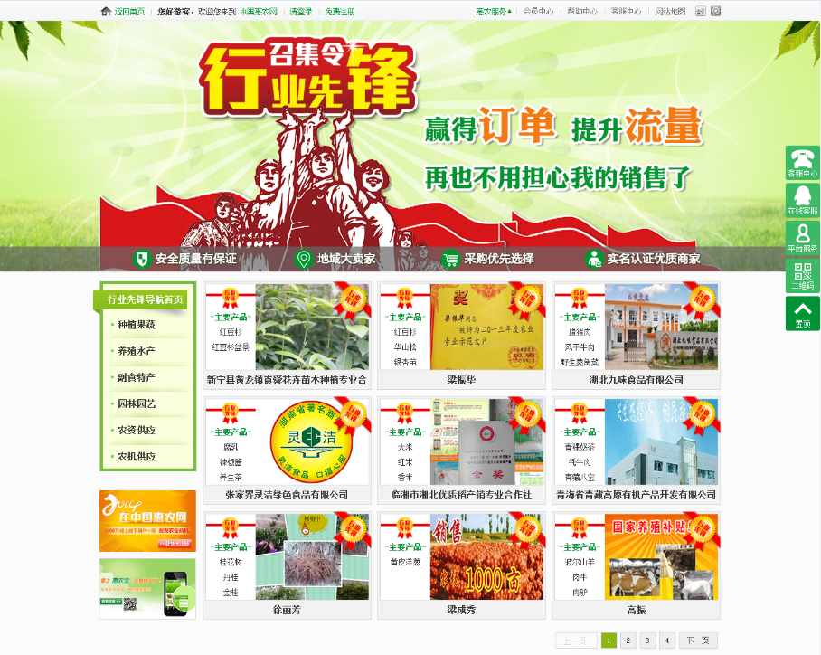 中國惠農網剖析市場需求,傾情打造三農行業綠色品牌。此次菜博會上,將重點推出“行業先鋒召集令”的活動。將在全國挑選100家優質的客戶,不僅為廣大採購商提供安全、健康的選擇,更是為企業品牌塑造及產品宣傳提供最有力的支持。據中國惠農網展會負責人王銀波透露:只要獲得這一資格的入駐商,就將獲得中國惠農網為其提供的六大優質服務及專業化電商運營支持,還將擁有自己的展示區域,打造綠色品牌宣傳渠道。為企業在中國惠農網上提升流量,贏得訂單提供了最有力的保障。中國惠農網展會負責人還表明:具體的六大優質服務及電商運營支持的相關內容將在展會上詳細介紹。