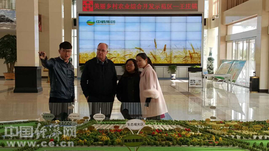 以色列農業專家李伯奇在中鶴集團辦公樓大廳聽取集團規劃發展情況
