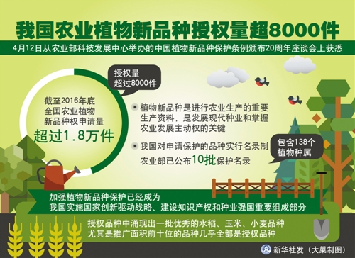 經濟日報北京4月12日訊 記者喬金亮 農業部12日在京舉行《植物新品種保護條例》頒布20周年座談會。會議透露,截至2016年底,我國農業植物新品種權總申請量超過1.8萬件,總授權量超過8000件,年申請量位居國際植物新品種保護聯盟成員國第一。授權品種中涌現出一批優秀的水稻、玉米、小麥品種,尤其是推廣面積前十位的品種幾乎全部是授權品種,為保障國家糧食安全作出了重要貢獻。