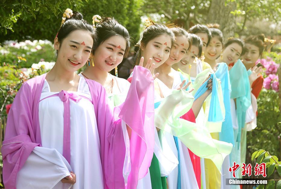 4月20日,身著古裝的美女在鹽城亭湖區黃尖鎮欣賞牡丹。以“相知千年牡丹,福至鶴鄉黃尖”為主題的黃尖牡丹節近日在鹽城市亭湖區黃尖鎮開幕,牡丹研討會、睡蓮文化展、“十佳農民歌手”大賽、美女直播秀、親子風箏節等30多項精彩活動將輪番上演,吸引了眾多遊客前來踏青賞花,感受亭湖綠色生態美景。朱辰星 攝