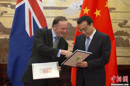 李克強表示,你此次訪華我們共同宣布人民幣同新西蘭元直接交易,這將有利于降低兩國經濟主體匯兌成本,促進雙邊經貿金融合作,要把這件好事辦好。希望新方繼續支持中國金融機構在新設立分支機構,向新企業積極推介使用人民幣,夯實和擴大雙邊金融合作基礎。