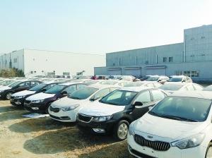 ▲現在 記者在一家東風悅達起亞4S店的露天存車區看到,元旦期間還滿滿的庫存車現在已售出了大半。