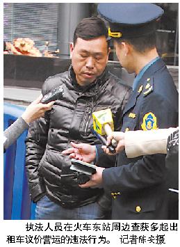 昨天下午,記者隨市交委的執法人員前往火車東站等地展開暗訪,議價的士、山寨司機等非法營運行為被蹲守在現場的執法人員當場查處。