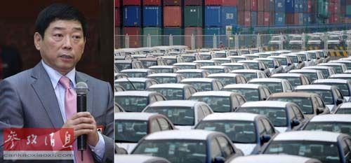 資料圖片:左圖為長城汽車股份有限公司董事長魏建軍(2012年11月9日攝);右圖為上海港外高橋港區等待出口的自主品牌汽車(2011年12月3日攝)。