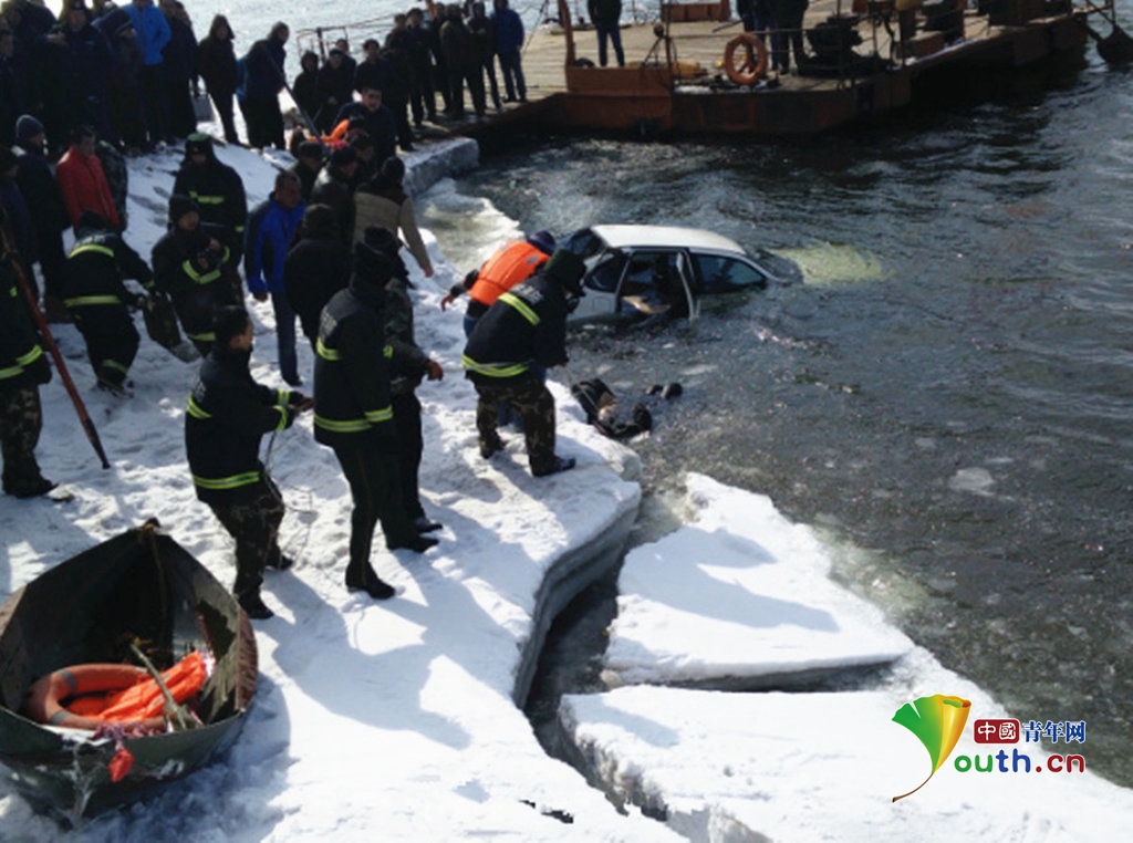 2015年3月12日消息,吉林省吉林市。3月11日8時,在龍潭區烏拉街鎮舊站村松江渡口,有人發現一輛白色轎車沉在江中。有人認出該車是相鄰的查里巴村張某的,于是認識該車的村民聯係了車主的父親,同時有人報警。隨後,民警、消防、水上救援大隊等相關人員相繼趕到了現場。經過緊張的打撈,當日下午,車內已死亡的一男一女拽出後被大家拉到了岸上。經車主父親辨認,男子是其前一天失聯的兒子張某,女子為張某的女朋友。