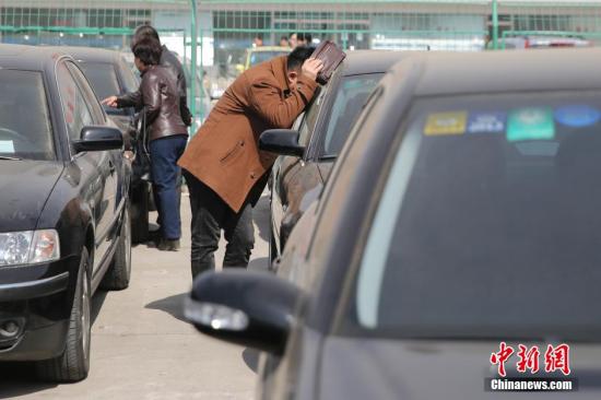 3月15日,市民正在拍賣會預展上參觀車輛。當日,第二輪“中央和國家機關公車改革取消車輛”在北京北汽鵬龍機動車拍賣有限公司進行預展。拍賣會將于3月18日和3月30日舉行。中新社發 熊然 攝