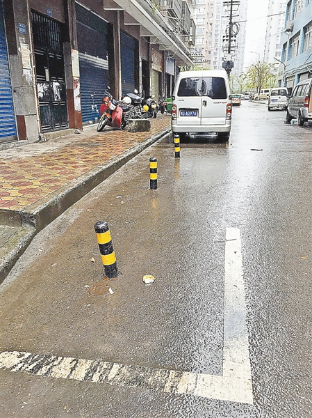 無獨有偶,家住渝北區洋河花園的市民陳女士也向本報反映,洋河北路69號一家餐館前,有人私自在公共停車位前修建了幾根鐵樁,把公共停車位變成“私人停車場”。陳女士說,公共停車位應該是為市民和業主提供便利,現在卻被商家“霸佔”。