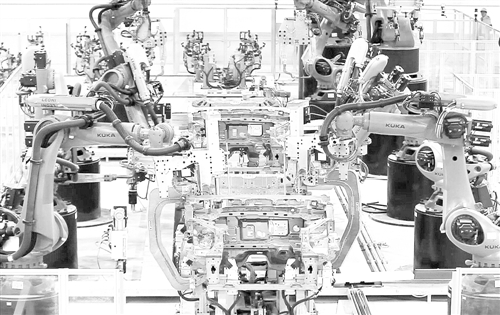 北汽集團加快向網絡化、智能化、服務化和國際化轉型。將新能源汽車納入產品規劃,並以純電動汽車為技術路線,建設充電站,助力新能源汽車產業生態圈的發展。圖為位于江蘇丹徒的北汽集團鎮江產業基地生產線。崔華東攝